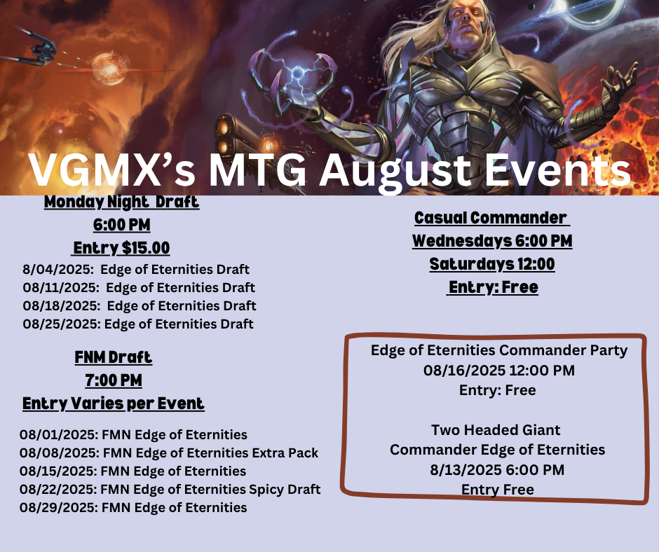 VGMX is The Nerd Emporium with a little bit of everything to embrace and express your inner nerd. With core values of customer commitment, integrity and being the most awesome Nerds that create a enjoyable environment for all. VGMX has been serving the Columbus, Ohio and the surrounding local communities since 1996. With a focus on new and used Trading Card Games, Video Games + Accessories, Board games, Nerd Apparel and so much more. VGMX has one of the largest selection of Magic the Gathering, Pokémon and Yu-Gi-Oh singles. Our knowledgeable staff has decades of experience are here to help.