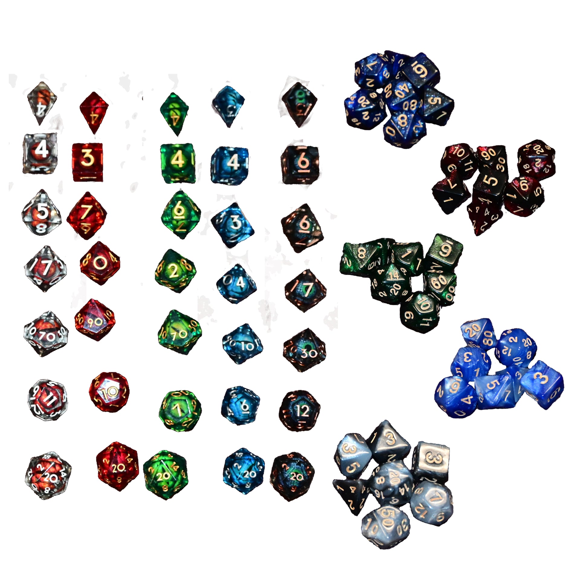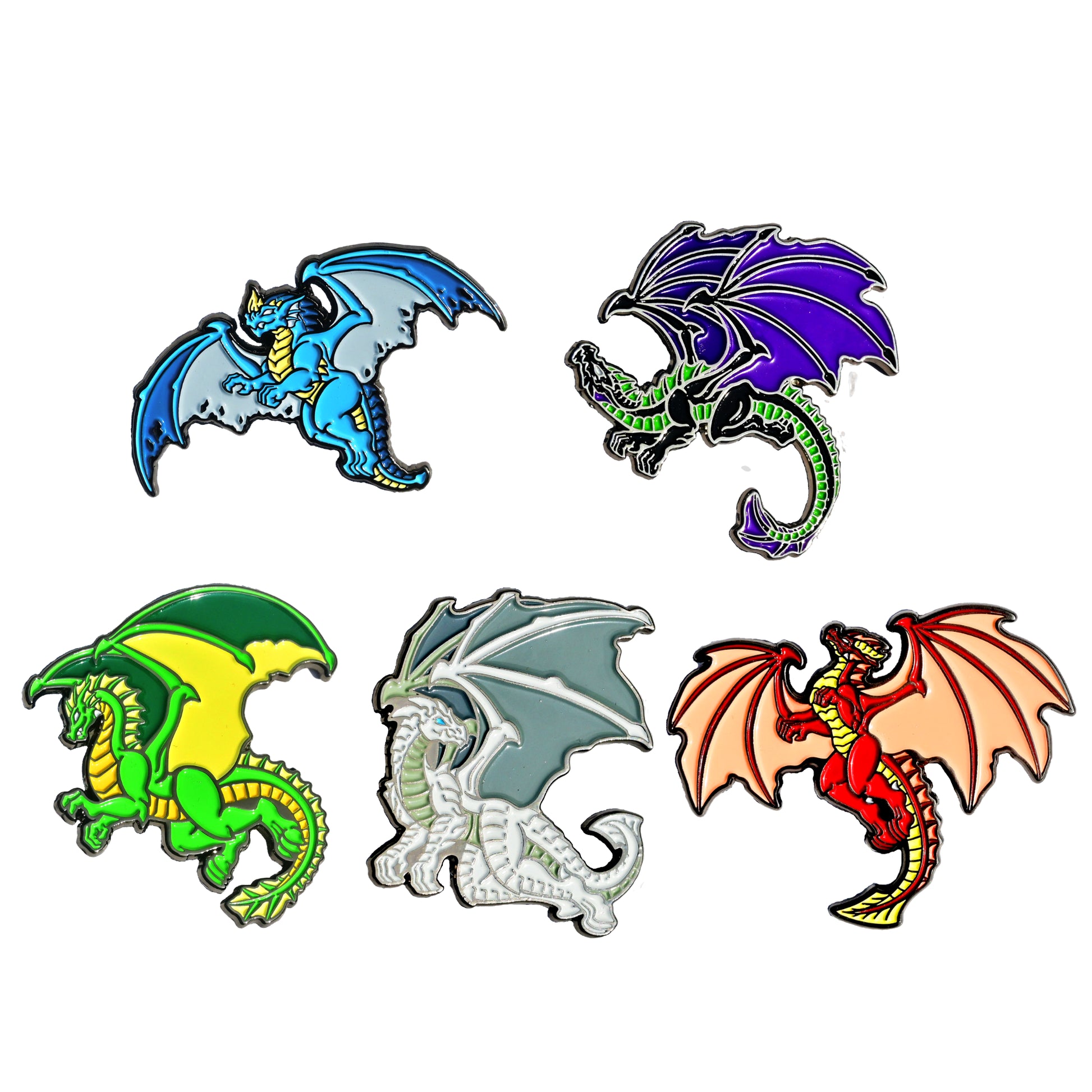 Each bag contains a dice pouch printed with fantasy art, a high-quality enamel pin, an inspiration token using Dungeons and Dragons fifth edition gaming mechanics, and a set of resin or acrylic gaming dice.