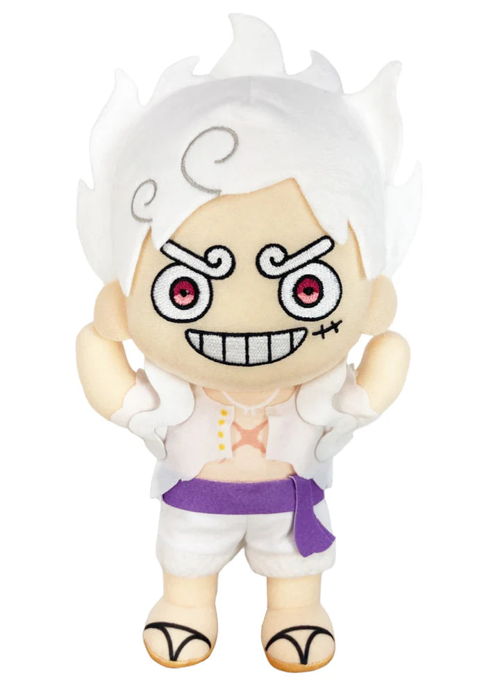 Celebrate Luffy’s epic Gear 5 transformation with this cheerful, high-quality plush that captures his bold new look while staying soft, cuddly, and full of character. Depicts Monkey D. Luffy in his Gear 5 / Sun God Nika form, complete with his trademark smile, energetic expression, and stylized costume details.